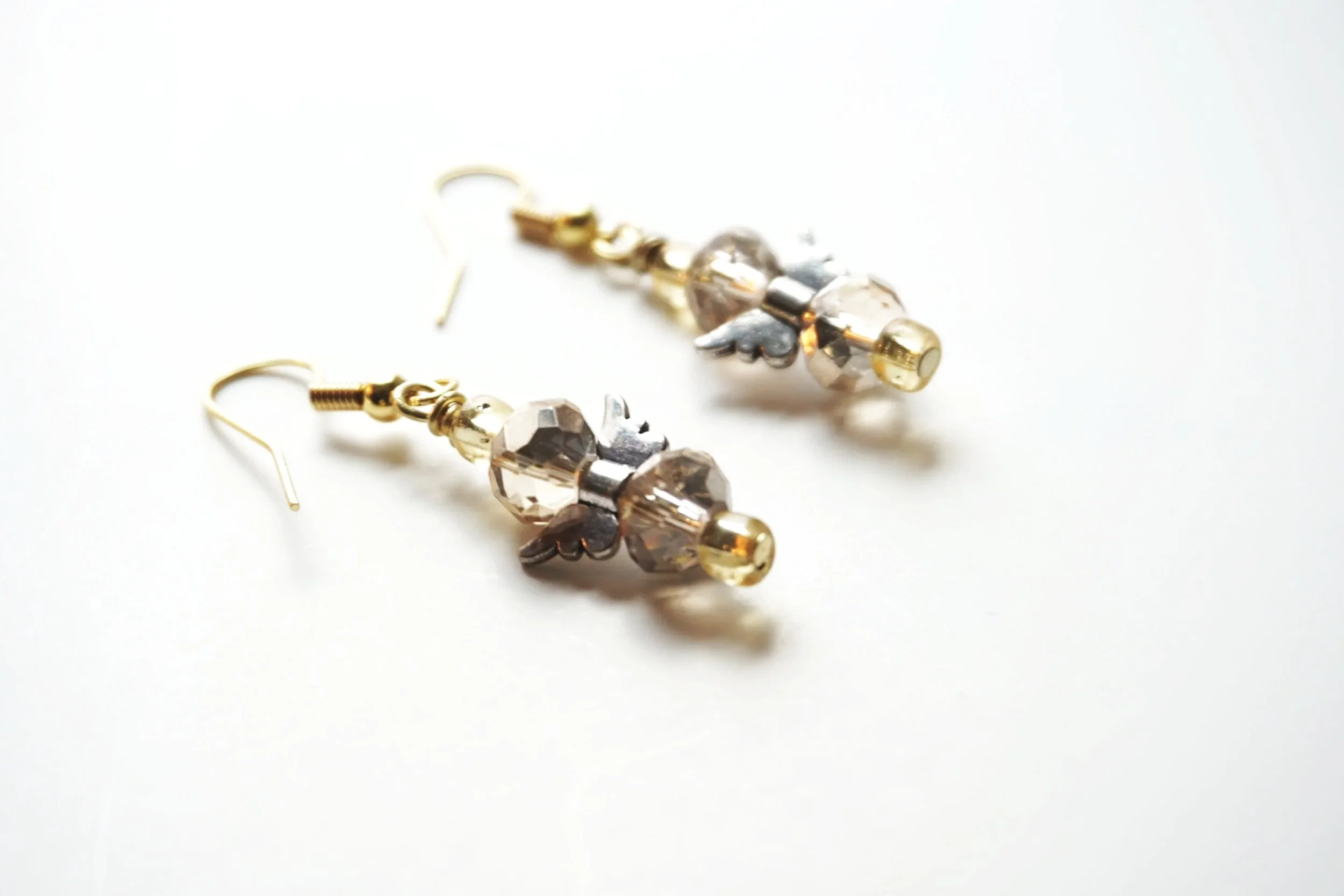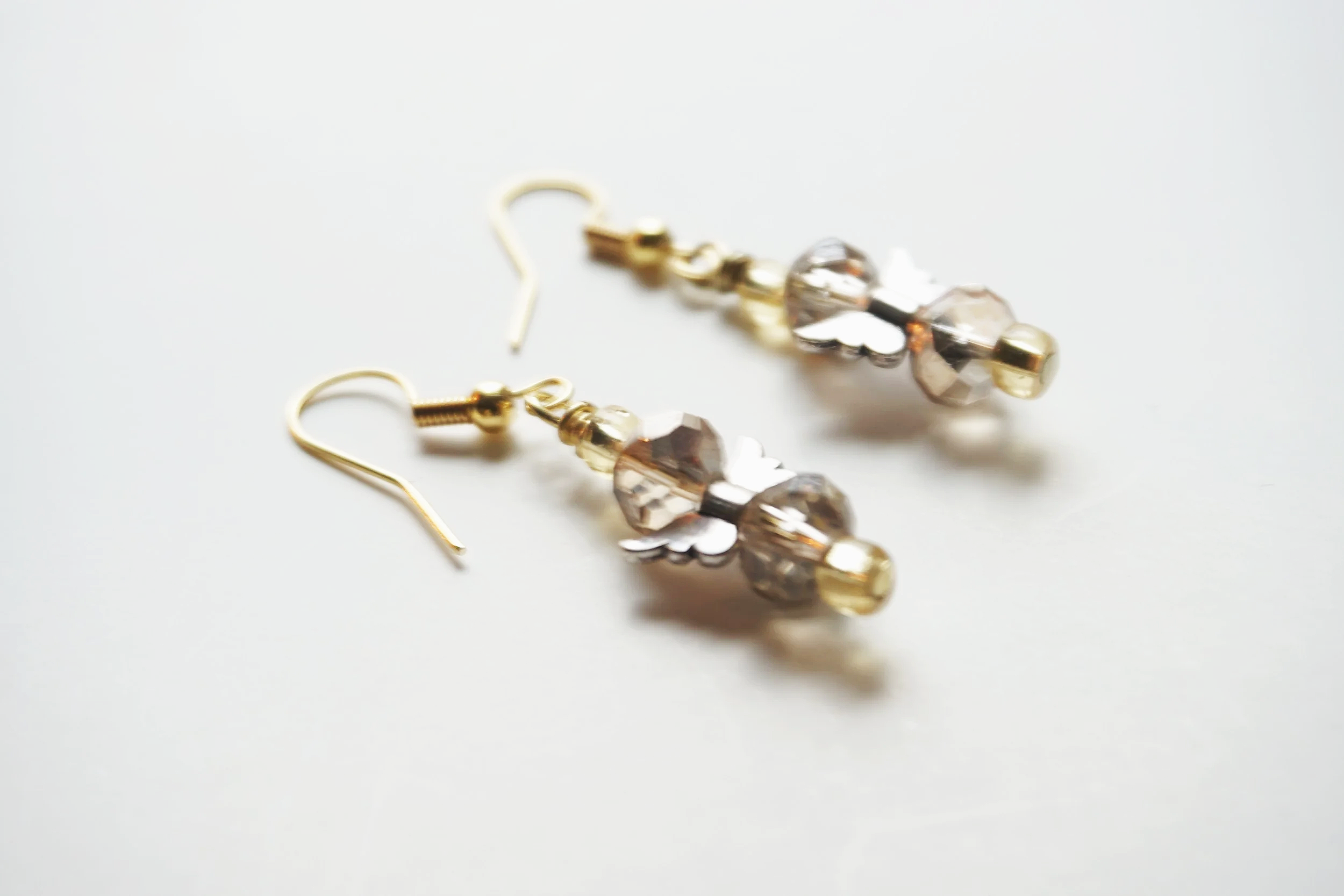 Cylindrical Aventurine Earrings - Clear Iridescent Faceted Crystals