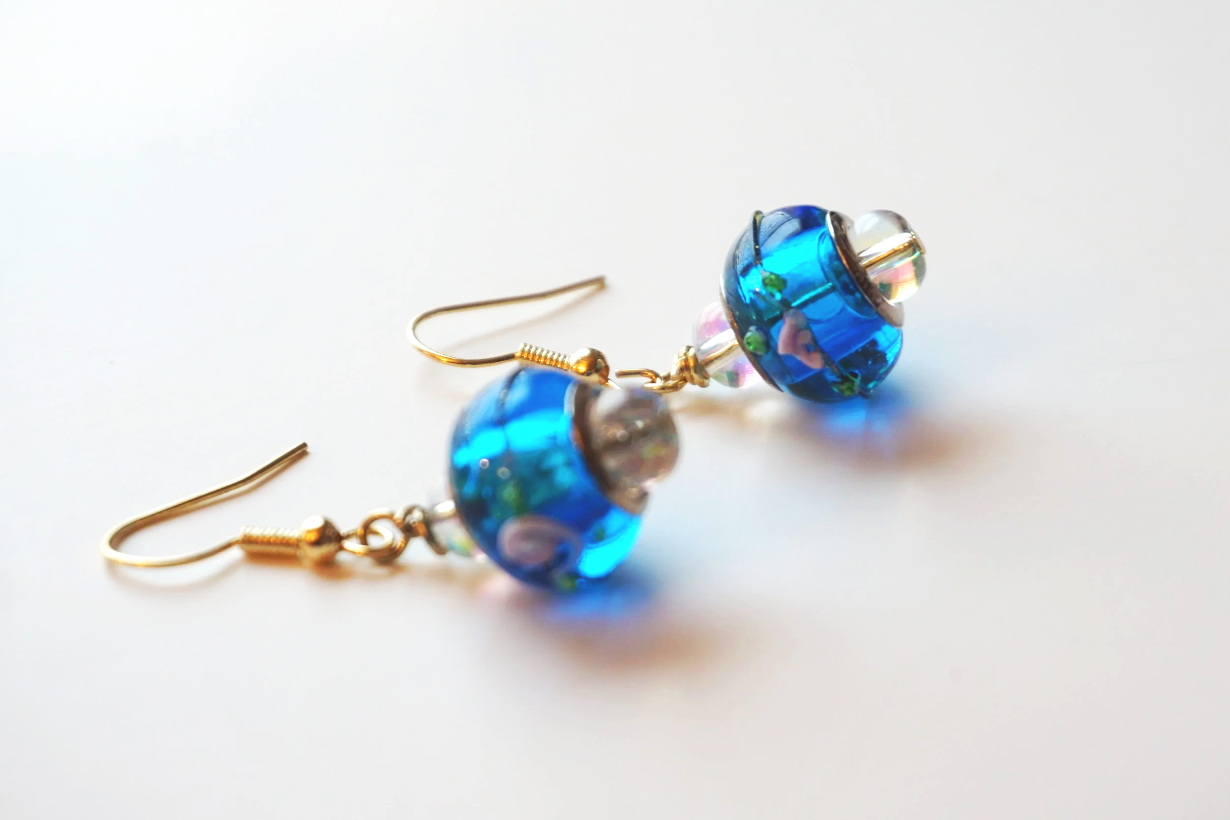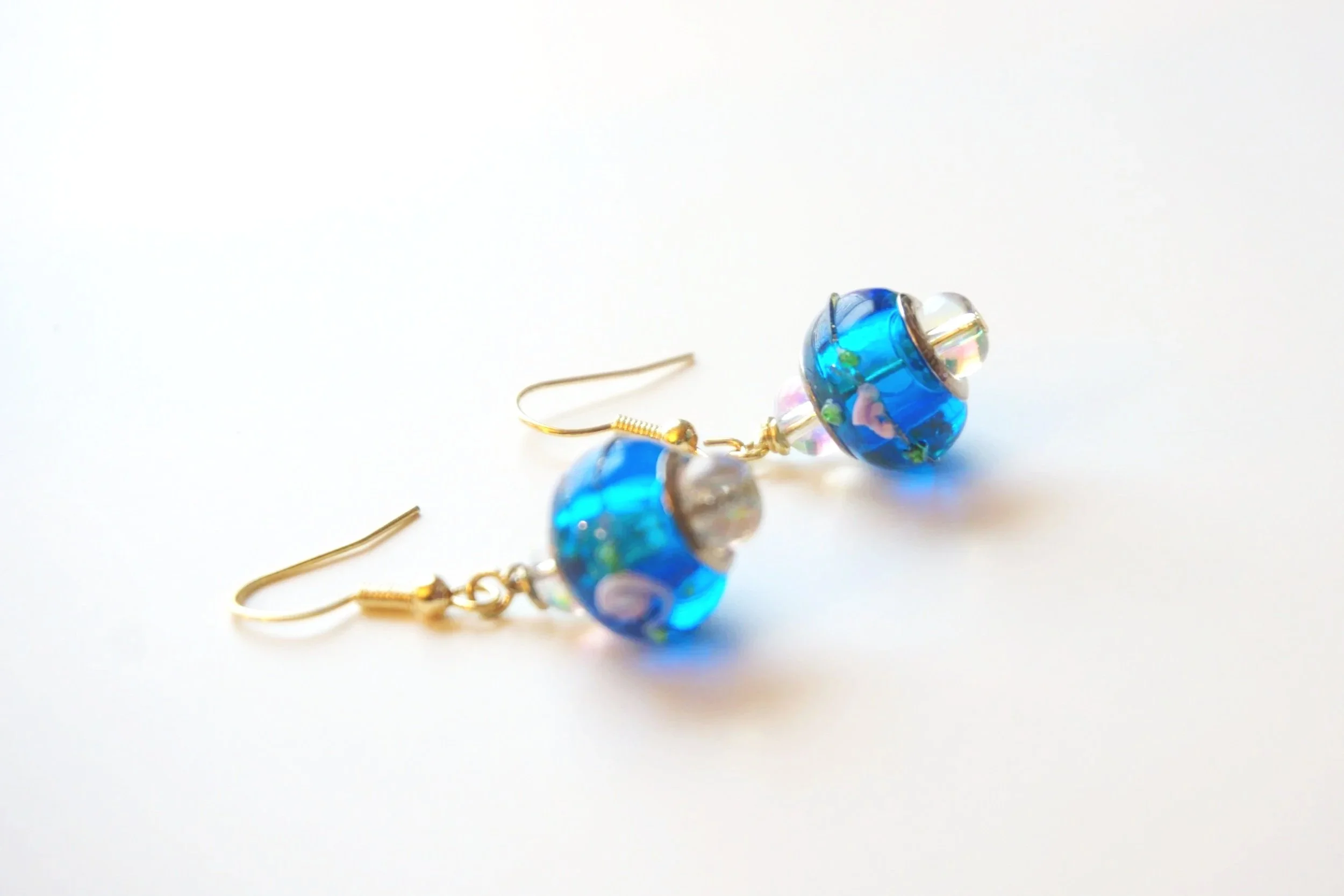 Beautiful handmade wire wrapped Agate and Aqua Glass earrings! Silver tone fish hook ear wires with genuine agate! Very beautiful earrings that catch the light, and will look amazing with anything you wear! God bless you!
