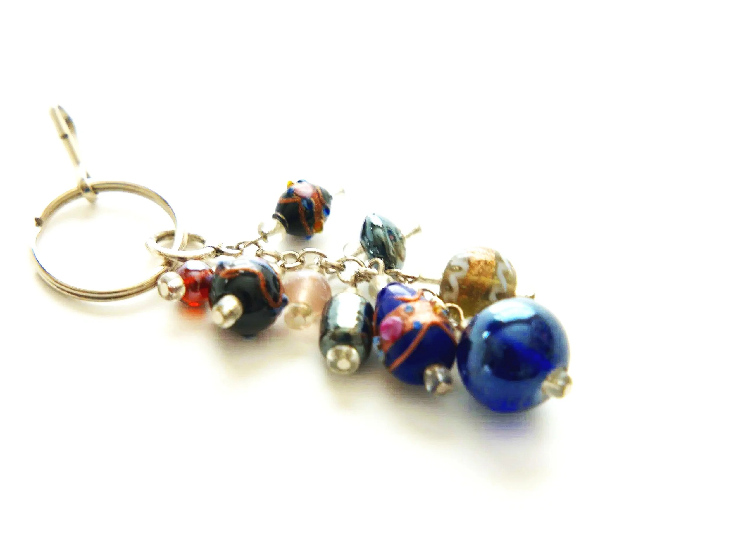 Beautiful Purple and Clear Glass Bead Bracelet! This bracelet has blue, black, silver, teal faceted glass beads! It also has cubed blue iridescent beads, and colorful clear iridescent glass beads! These beads are strung on a strong stretch cord, that can be easily rolled onto your wrist! God bless you!
