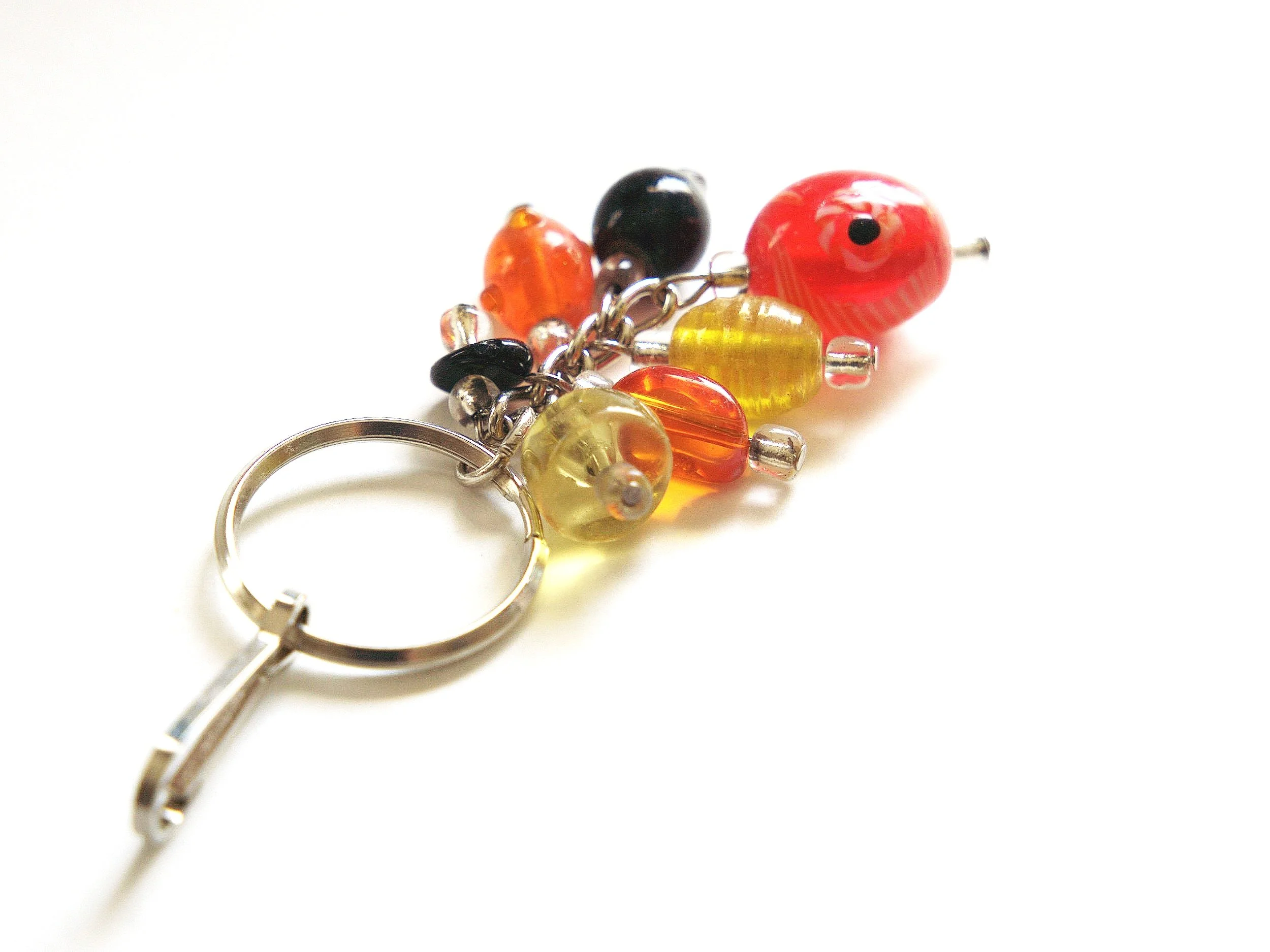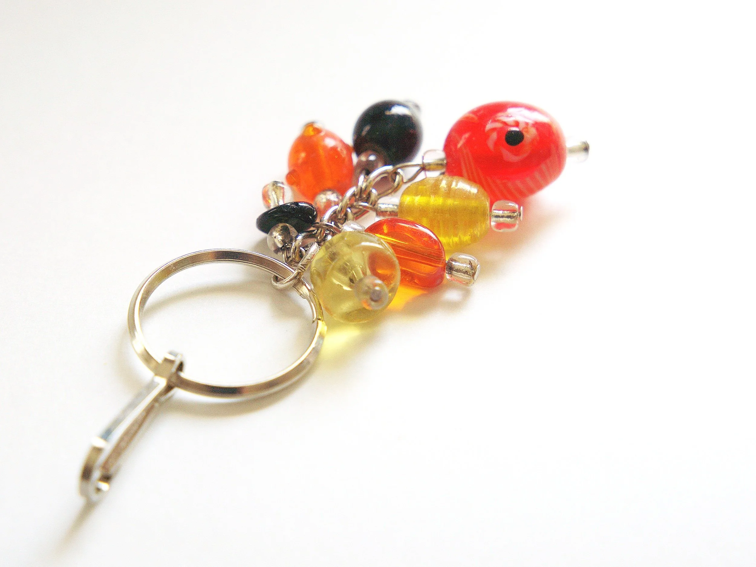 Handmade Orange Yellow and Black glass bead keychain/charm/zipper pull.